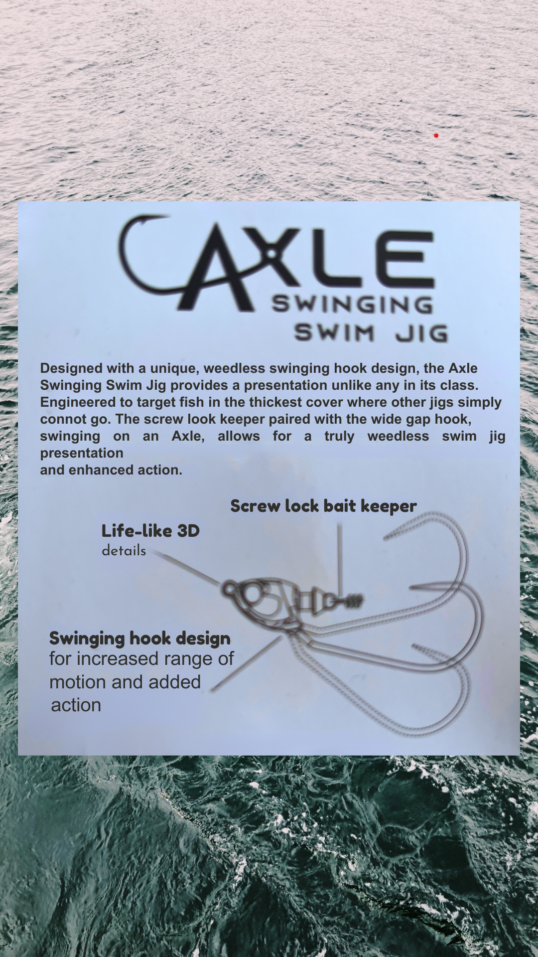 Designed with a unique, weedless swinging hook design, the Axle Swinging Swim Jig provides a presentation unlike any in its class. Engineered to target fish in the thickest cover where other jigs simply cannot go. The screw lock keeper paired with the wide gap hook, swinging on an Axle, allows for a truly weedless swim jig presentation and enhanced action.