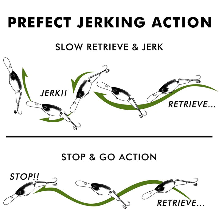 - Truscend Exclusively Designed - The Truscend jointed jerkbait are also fitted with super sharp BKK hooks, 3D eyes, top-of-the-line paint schemes, loud internal rattles, and textured scale pattern finishes. The Truscend jointed swimmer borders between lure and work of art, available in multiple sizes and a range of colors, they are sure to be your new favorite crankbaits.