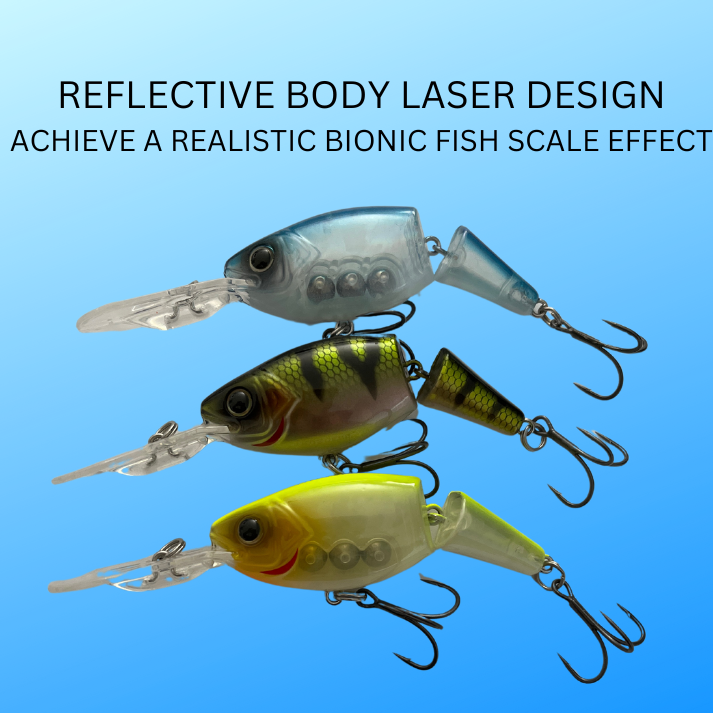 - Drive Any Hungry Predator Wild - The Truscend Fishing Lure has a faint rattle chamber creates a light knocking sound as well that provokes strikes without spooking carefully fish. Reflective body laser design, which achieve a realistic bionic fish scale effect. The translucent body makes the fish's body as transparence as a diamond underwater, sparkling in the refraction of sunlight makes it easier for fish to find the bait in dirty water.